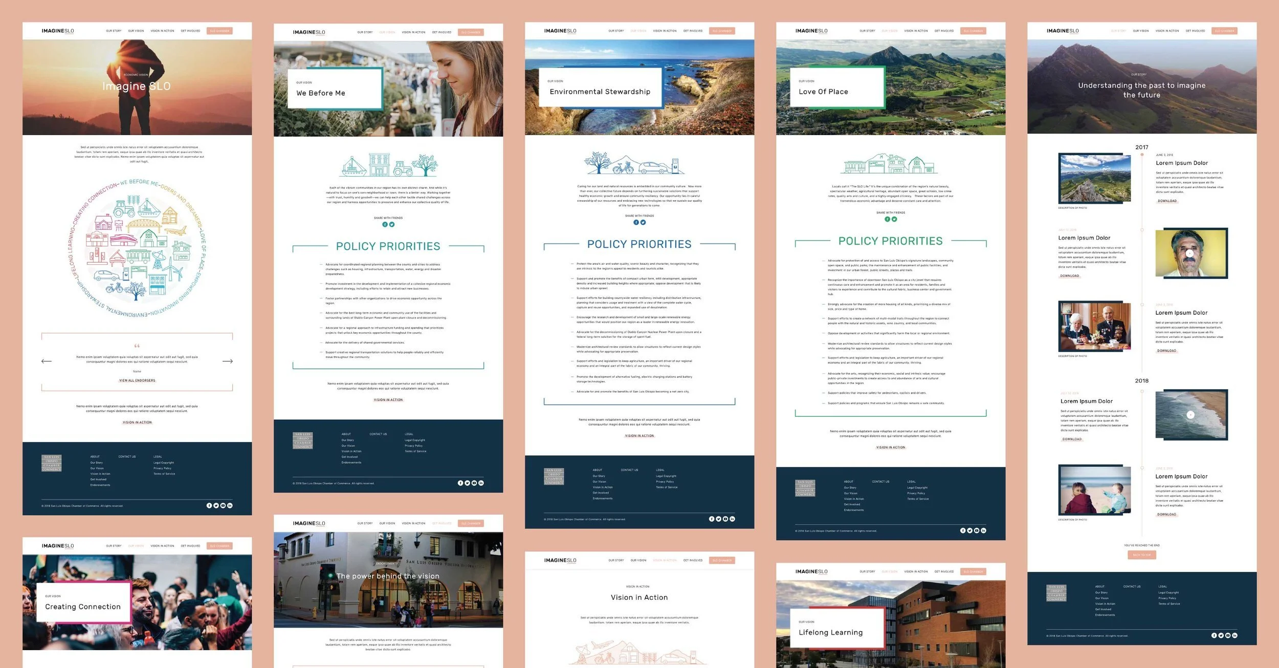 I had the opportunity to collaborate with the San Luis Obispo Chamber of Commerce to design the website and branding for their "Imagine SLO" campaign. The website highlighted the Chamber's efforts to improve the city’s infrastructure. To support this message, I illustrated iconic landmarks, created wireframes for the microsite, and designed the campaign logo. This project was made possible through my work with the talented team at Matchfire Co.